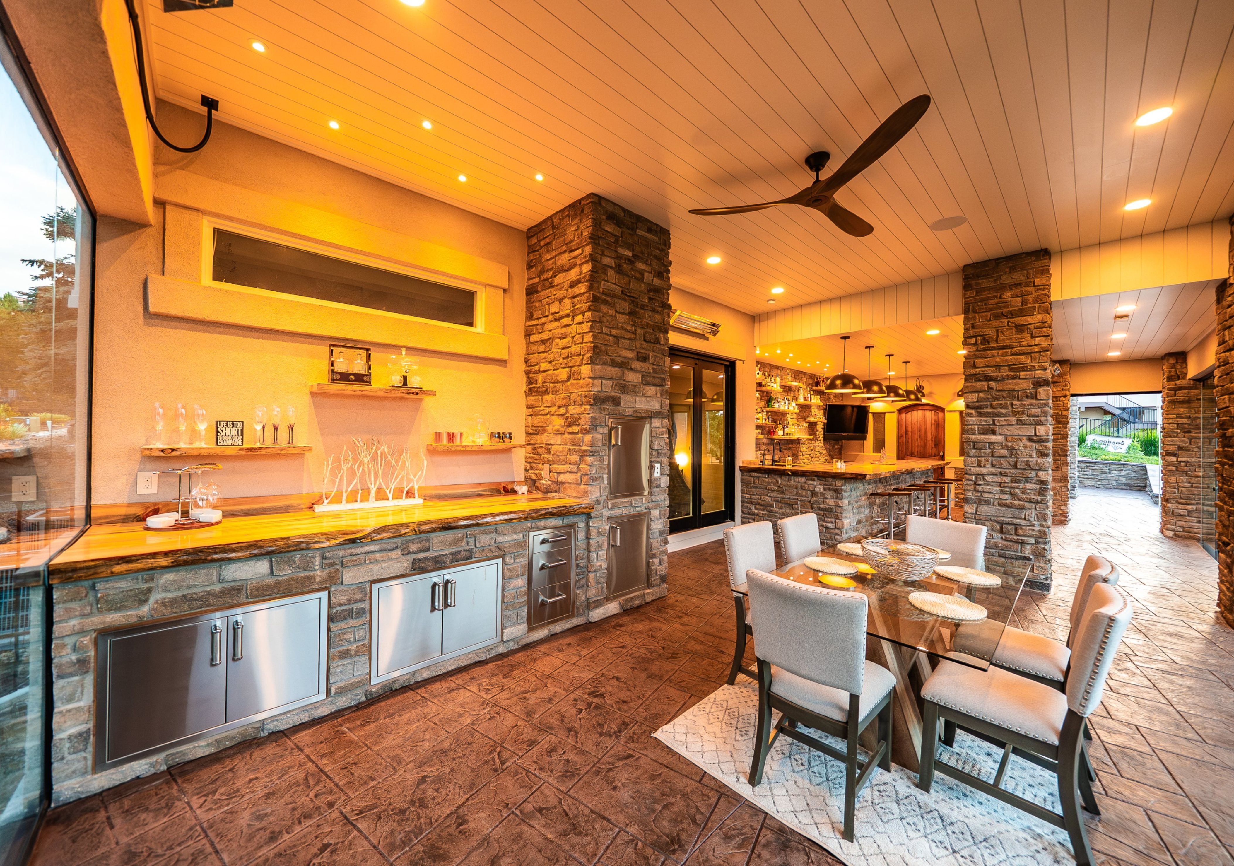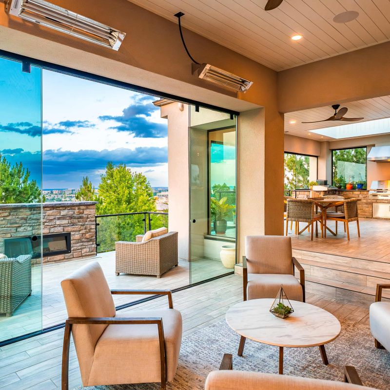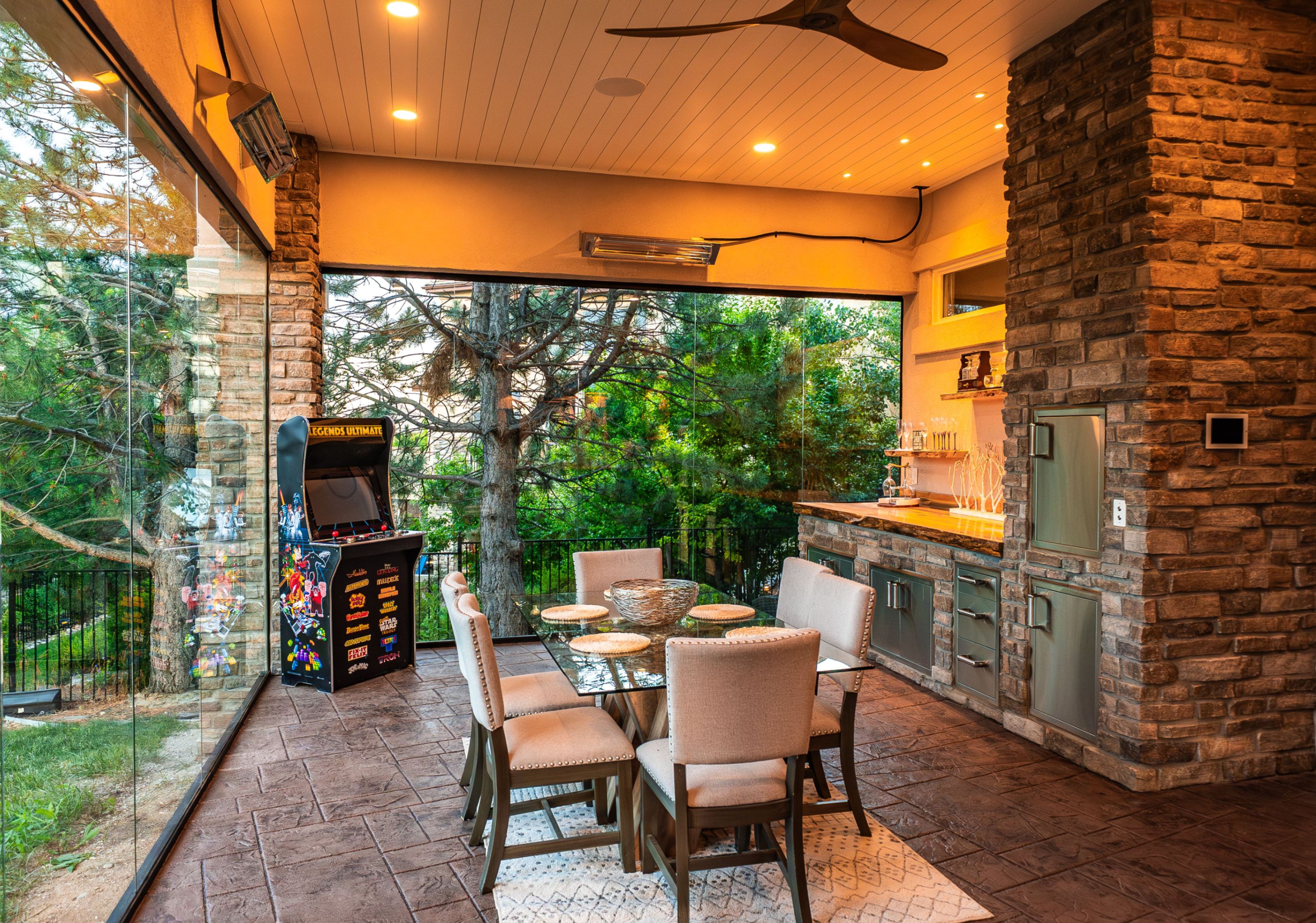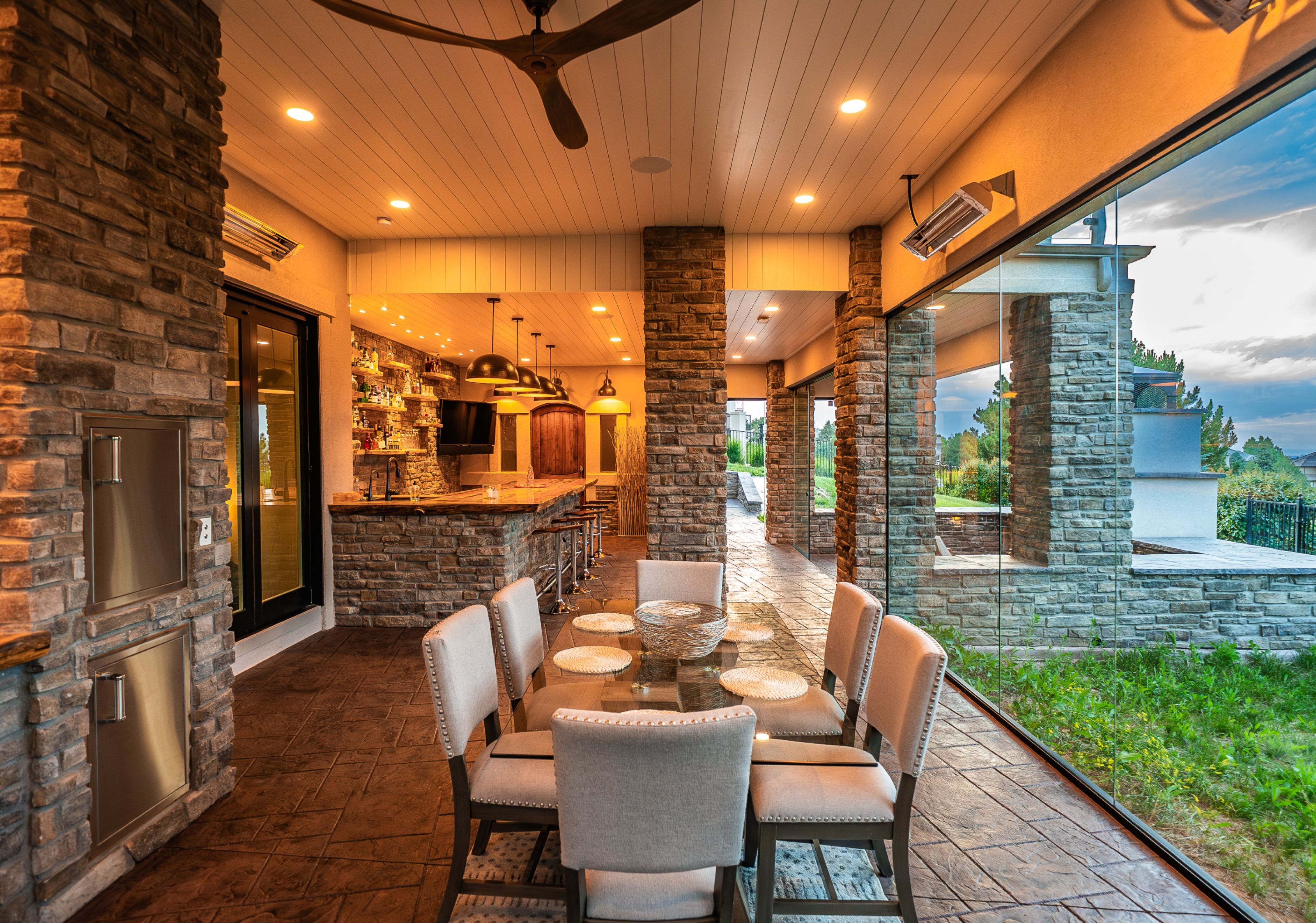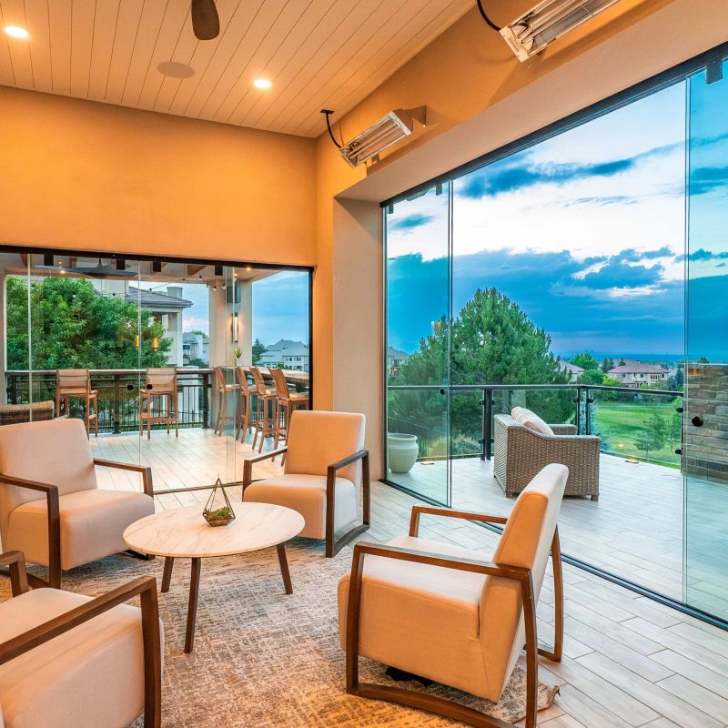 This stunning residence in Lone Tree, Colorado boasts beautiful mountain and city vistas. While the surroundings were nothing short of spectacular, the home was lacking in terms of outdoor enjoyment. The homeowner's goal was to remodel the inside kitchen, living room, and basement so all three spaces integrated with an entirely new Four Season Outdoor Living Space.