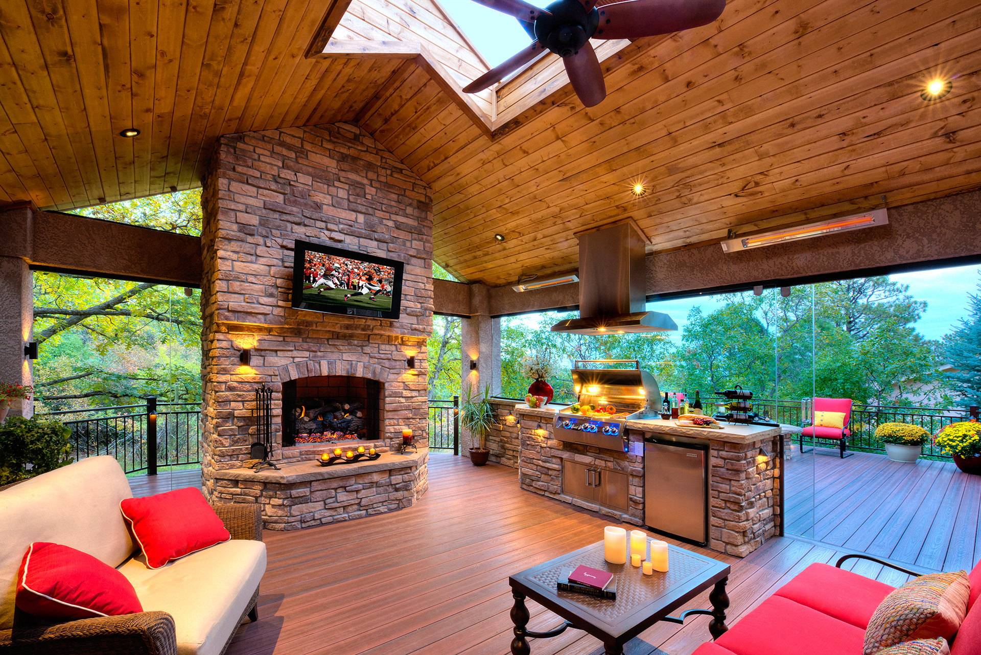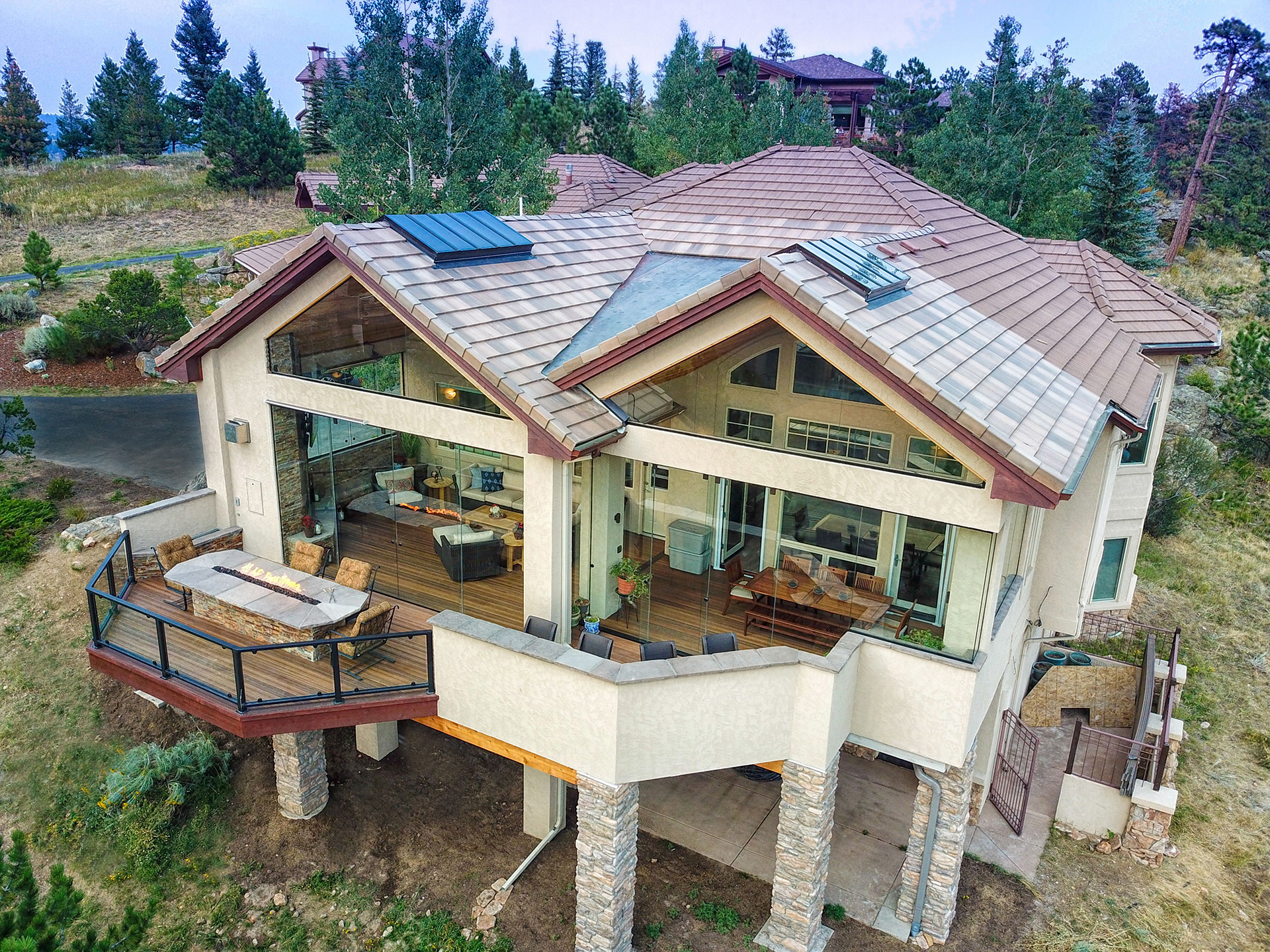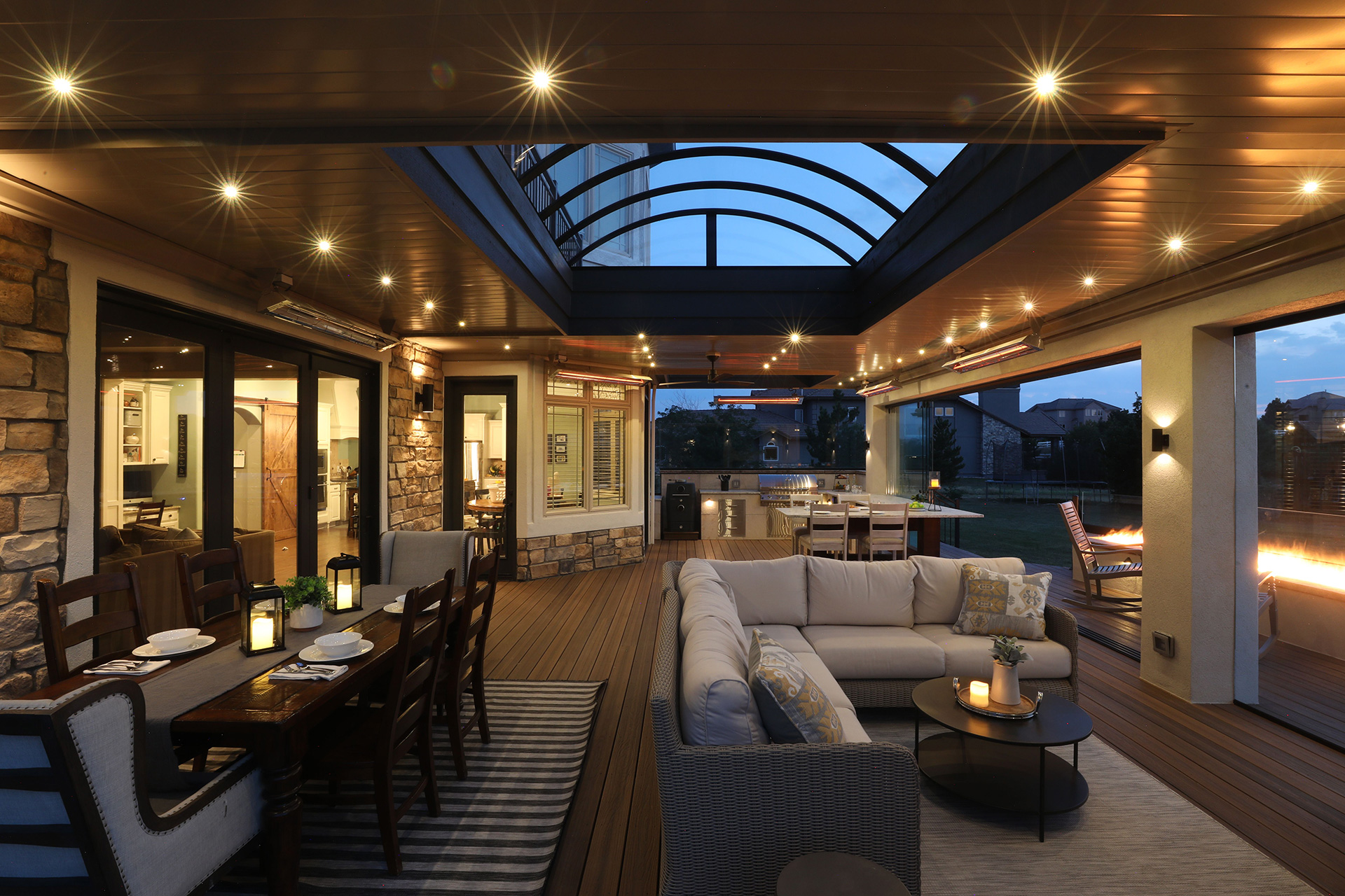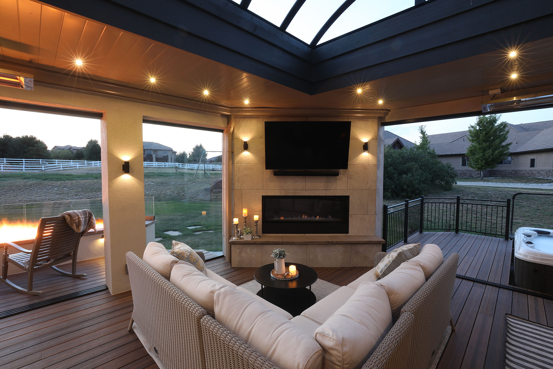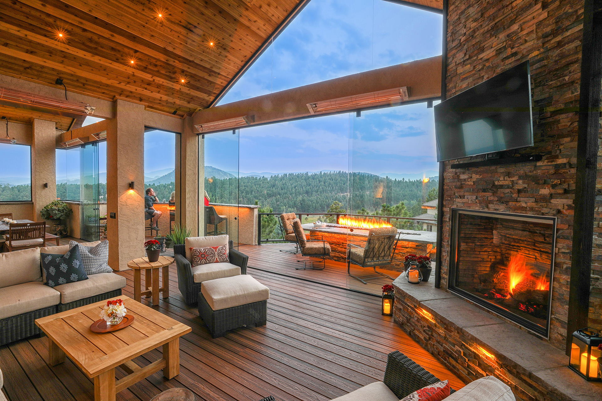 Colorado is one of the greatest places to live since you get to experience all four seasons in a mountainous setting. From beautiful warm summer days to the most colorful falls, it's a place to be outdoors. We provide a way for you to enjoy all four seasons from the comfort of your outdoor living space. Just imagine being outside in January in the middle of a blizzard. The fireplace is roasting, the heaters are on and you’re warm and cozy, enjoying company on your very own deck. You’re surrounded by glass and watching Colorado paint a perfect snow scene. This is nature and beauty at its core and we bring that to every design we do. Our enclosed living spaces provide this and much more. We use operable and fixed panels of glass that allow you to enjoy all the seasons of Colorado while also protecting your deck and patio.