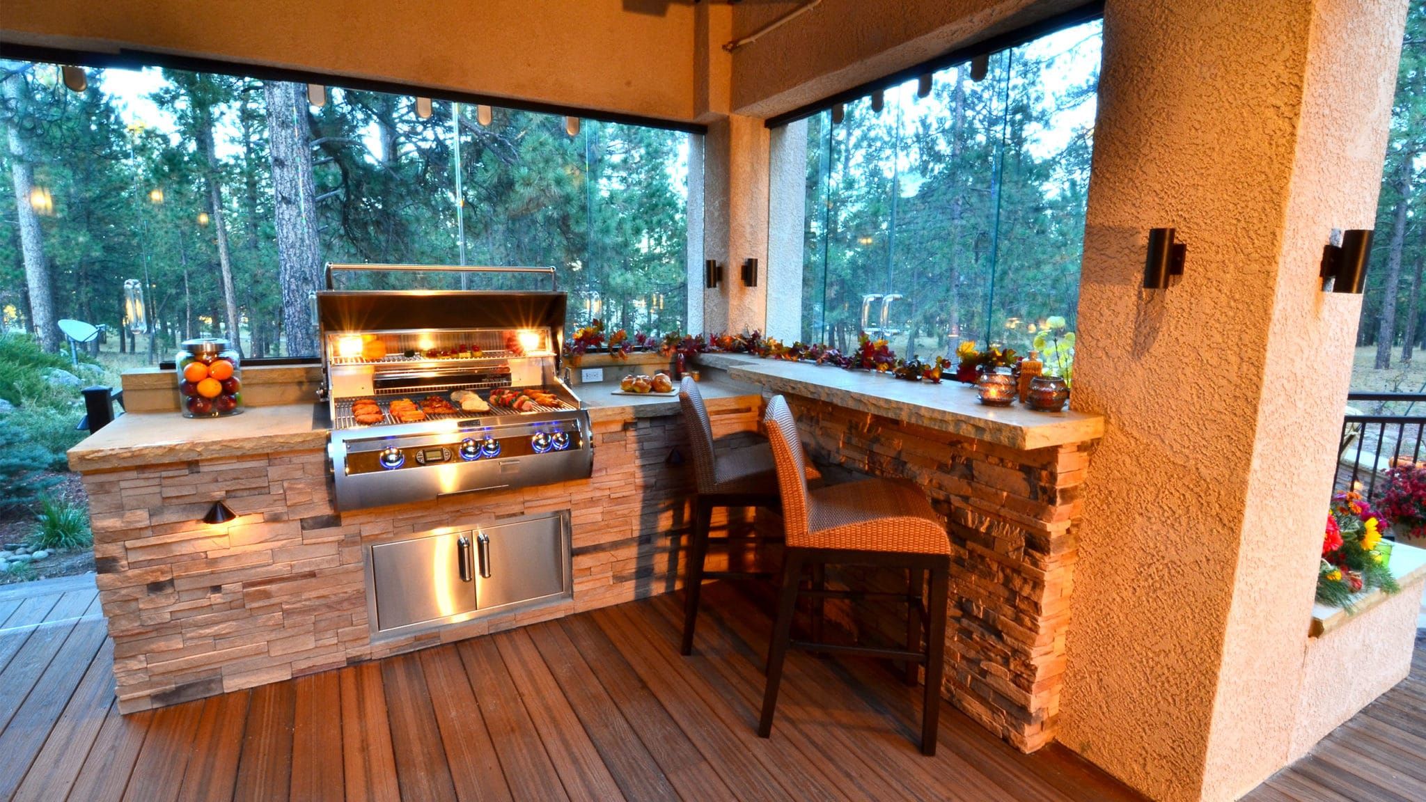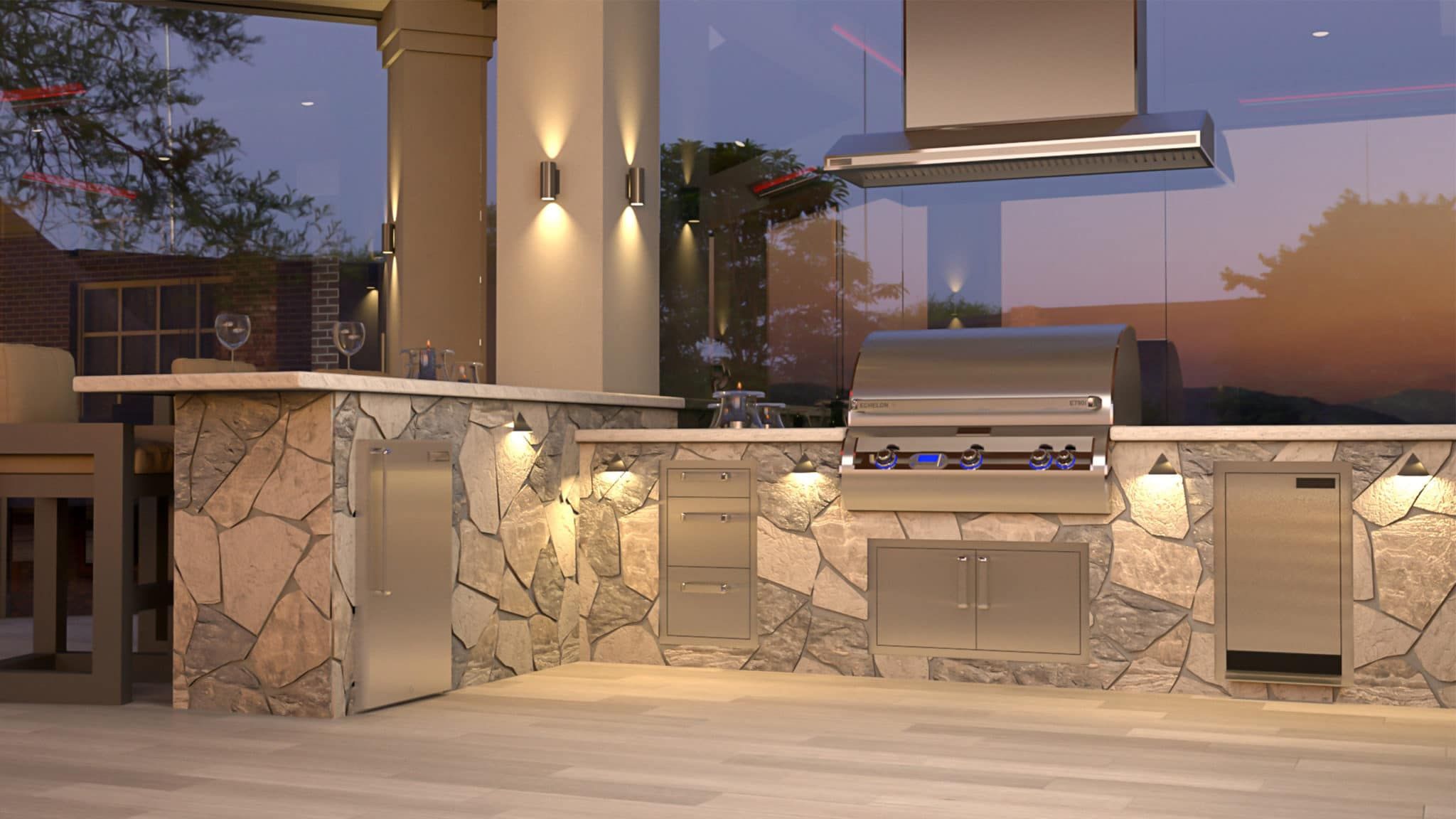 Outdoor bars create the perfect space to entertain. They can be customized to different heights (36-42 in) with features unique to each project. With built-in features like beverage centers, ice chests, cocktail centers, and the adjacent grill, you can dine and drink in style.