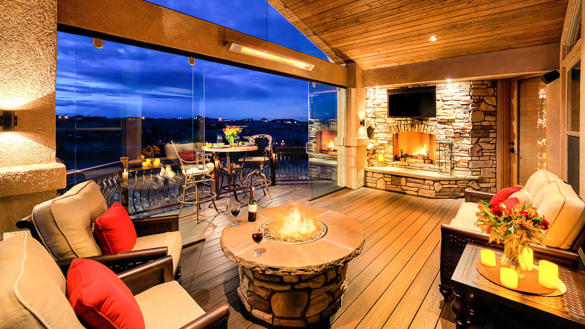Gas burning fireplaces deliver convenience and warmth. They quickly distribute heat to any outdoor living space